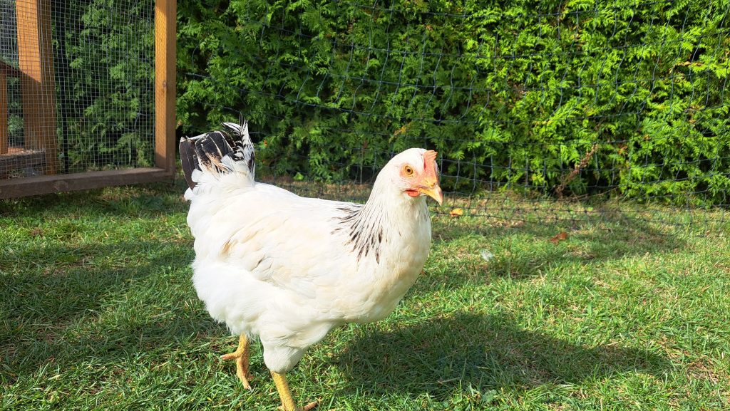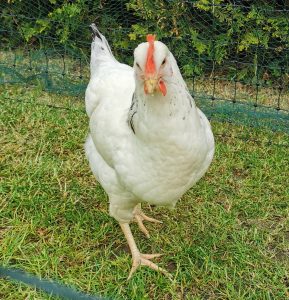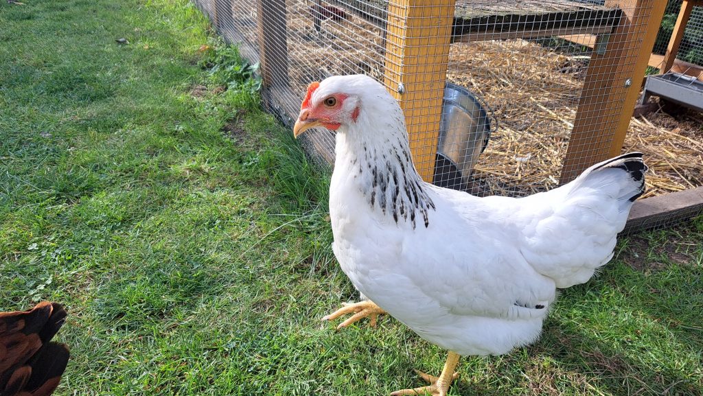 Ich bin die neugierigste und renne auf meine Menschen zu. Meine Federn sind leicht bräunlich und meine Schwanzfedern etwas schwärzer als von Elsbeth. Ich bekam meinen Namen als erste.