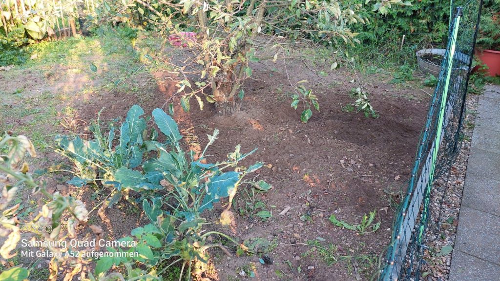 Die drei waren sehr fleißig und haben den vorderen Teil des Gartens gut „umgegraben“. Leider hat der Kohlrabi etwas gelitten. Sie haben die Blätter so bearbeitet, dass man denken könnte, sie sind von Schnecken befallen worden. 🙂